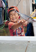 「釣れたあ!こわ〜い。」