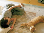 「にゃ〜に、お昼ね中よ!おばあちゃんと。」 西山ノリ子 (大牟田市)