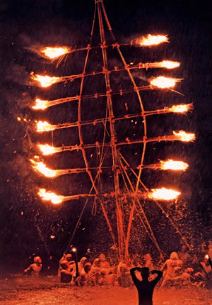 巨大燈籠(とうろう)を回転させる「吉原の万燈籠(まんどろ)」、雨の中で懸命に参加する人たちの臨場感が最高だ。燃え上がるたいまつの動きも良い。暗い条件で銀塩なら粒子が荒れるところだが、デジタルの長所を見事に引き出して収めている。(竹内)