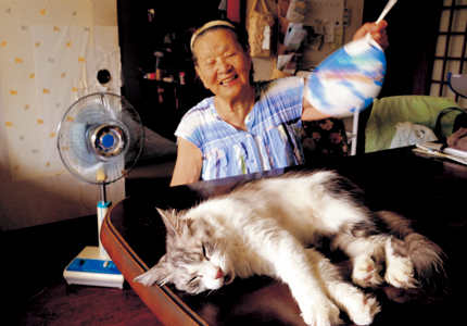 団扇であおがれて、猫が安心しているというか、本当にリラックスしています。とても微笑ましくて心優しくなる場面です。構図的にも猫がメインで真ん中にドーンとあり、主役は主役として主張して、きちっとセオリー通りに何を撮りたいのかがよくわかる作品です。