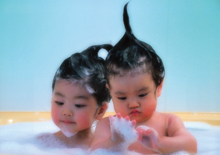 子供にとってお風呂というのは、裸になって自由に遊べる楽しい入浴タイムです。この作品はよくあるはしゃいでいるところではなくて、女の子のちょっとオトナっぽい表情をとらえています。ソフトをかけることにより、やわらかな泡を楽しむ様子を一段と雰囲気のある作品に仕上げています。