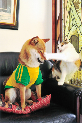 この作品は、シャッターチャンスもいいし、一軒のお宅で犬も猫も飼われていているという状況も読み取れ、犬と猫の各々の性格というのもよく分かるという、これまでにない傾向の写真でした。猫のほうが先に飼われていて、犬があとから来たんでしょう。だから猫に頭があがらないというような表情が捉えられたのではないかと思います。