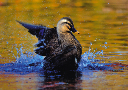 瞬間を止めた美しさ、これぞ写真にしか出来ない技をなし得てお見事!何より動きを感じられるところが好きです。ピントも気持ち良く目にきていて良いですね。少々左側の空間が足りない感じですが、背景も余計なものがなく、被写体が浮き立つ浅めの被写界深度、全体に二色にまとまった色合い、露出、鳥のポーズ、「ほとんど完璧!」です。