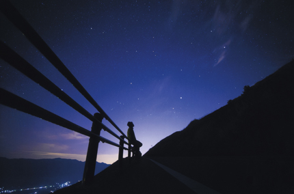 悔しいほどに、いい旅をしていますね。旅先で見上げた夜空は日常を忘れさせ、記憶に残るもの。作者が宇宙とのコミュニケーションイメージを見事に具現化できたのは、低位置から見上げるようにカメラをセットし、星空から作者のシルエットまで綺麗に写し出したから。そのシルエットも完全ではなく、わずかに服装のトーンを出すことで見る側の想像力を巧みにかきたてています。今すぐ旅に出たくなる、旅心を誘われる作品です。