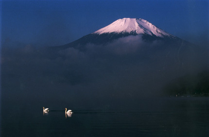 富士山の裾野にたなびく雲や湖面に立ちこめる霧。そこをハクチョウが優雅に泳いでおり、富士山を一層、荘厳なものにしている。このような素晴らしい瞬間に出合えた作者は幸運であるが、それをつかむ技量は努力を積み重ねた結果である。(田沼)