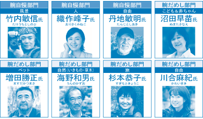 腕だめし部門 こども&赤ちゃん:沼田早苗氏、ペット:増田勝正氏、自然(いきもの・草木):海野和男氏、旅:杉本恭子氏、自由:川合麻紀氏