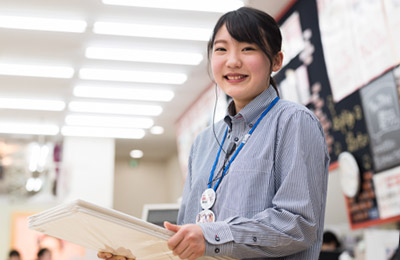 キタムラには店長をはじめ、頼りになる仲間がたくさん。分からないことはどんどん聞いてください。アットホームで打ち解けやすいことも思い出や気持ちを大切にする写真専門店ならではの社風です。仲間との会話はもちろん、お客さまともコミュニケーションをとるお仕事。接客そのものが就職活動に向けた準備にもなるかもしれません。