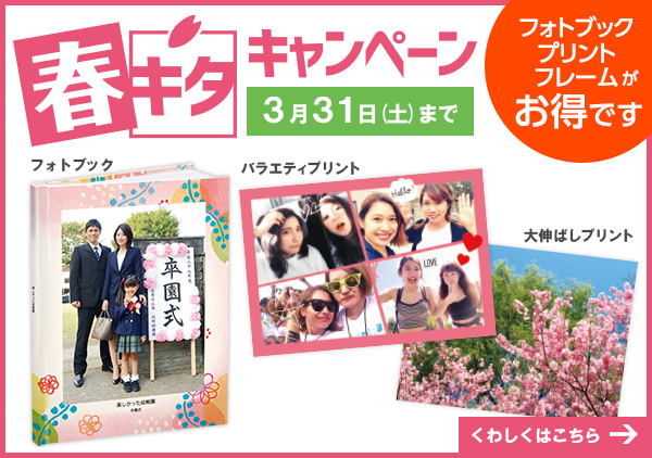 さて、この春キタキャンペーンは3月31日までの限定企画になっています。2ヶ月間の長期キャンペーンですが、「あっ!」とおもったそのときこそ注文のタイミング♪そしてこのキャンペーンをきっかけに撮影に足を運んでいただけることがあったら。旅行の荷物に「カメラ」「スマホ」が増えたら。とても嬉しく思います。思い出のすぐそばに。写真をぜひ添えてくださいね。お店で待ってます♪【春キタキャンペーンの詳しい価格、仕上がり納期はこちら】