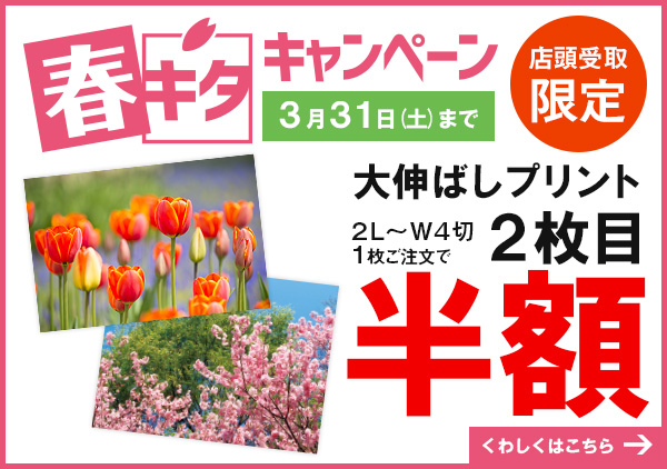 それはまさしくプレゼント。贈り物です。自分のために写真をプリントするという方もいますが、それより圧倒的に多いのがプレゼント需要。キレイに飾れるフレームと一緒に贈りましょう、その写真に写っているあの人に、もしくは当日、足を運べなかった仲間に。ご家族に。きっと喜んでくれるはずです。時が経って、写真をきっかけに思い出すことはよくあります。大きくプリントすることはそのときの気持ちを印象付けることにもなりそうです。「あれ、なんでこの写真だけ大きくしたんだろう。」「きっとお気に入りの写真だったんだろうなぁ。」【大きく残そう!春キタキャンペーンを詳しく】