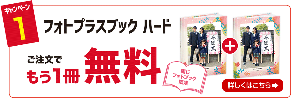 キタムラのイチオシフォトブック「フォトプラスブックハード」がもう一冊無料!同じフォトブックとの組み合わせ限定なので、プレゼントにもピッタリかと思います。卒業式や入学式に参加できなかった方へのプレゼントにも使えそうなんです!