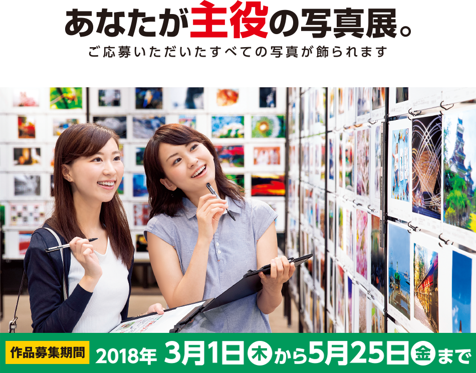 専用の台紙をご用意いただき、お気に入りの写真を貼り付けます。全国の会場からお好みの場所を選択するとそこに必ず飾られる写真展。まさに「あなたが主役の写真展」なんです。昨年は50,507点の作品が各地に飾られました。ファンにとっては毎年恒例のイベントになっています。