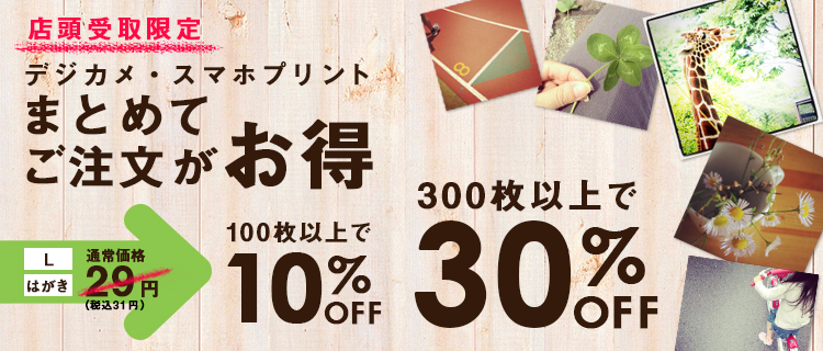 店頭受け取り限定で、L、KG(はがき)サイズのプリントが