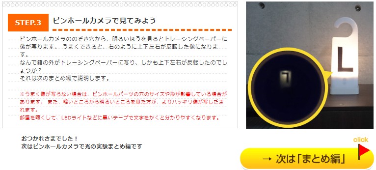高学年向けの内容になりますが、デジカメというかスマホの影響でカメラが身近になっていることもあって、ピンホールカメラはかなり新鮮に写るのではないかと。ちょっと苦労すると思いますが、3日で終わると目安も出ていますのでぜひチャレンジして欲しいです。