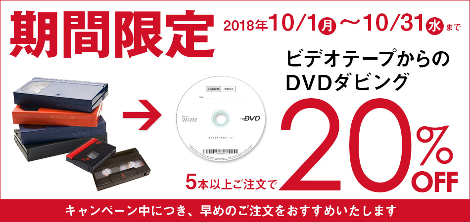 「ビデオテープからのDVDダビング20%OFFキャンペーン」(5本以上)
