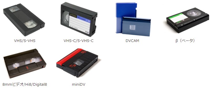 対応メディア:VHS/S-VHS:VHS-C/S-VHS-C:DVCAM:β(ベータ):8mmビデオ/Hi8/Digital8:miniDV(メーカーは問いません)