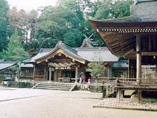 JR伯備線に特急やくもが走っていますが、これは「八雲」のことで、出雲を指しています。ちなみに「八雲の道」とは「和歌の道」のこと。ここ出雲に関連しては難しい人物の名前がたくさん出てきます。この熊野神社の祭にしても、祭神は素戔嗚尊(すさのおのみこと)で、この神様は日本を作った伊弉諾尊(いざなぎのみこと)の御子だそうで、別名を熊野大神櫛御気野命(くまののおおかみくしみけのみこと)と記されています。出雲の農作物の生産を見守る神様のようです。