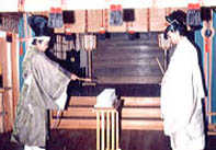 儀式の後は、出雲大社の宮司が「百番の舞」を舞いますが、熊野大神のお恵みによって豊作であった喜びを表わす儀式だそうです。