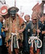 400年の歴史を持つ綱引きの綱は50mにもなりますが、毎年、近隣の住民によって作られています。中心に麻縄を入れて、直径20cmの綱に仕上げるそうです。15日の当日は正午から神事があって、2時前頃から大黒様と恵比寿様が昔の衣装に扮した2人が町を練り歩きます。町内の人に先導されて、まだ綱引きもしていないのに「えびす勝った、大黒勝った、エンヤ、エンヤ」の声がかかります。この時がひとつのシャッターチャンスになります。