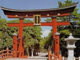 この敦賀市での撮影対象としては、地元では「けいさん」と、呼ばれている気比神宮があります。木造としては奈良の春日大社、広島の厳島神社の鳥居とともに、日本三大鳥居のひとつ、大鳥居があります。朱塗りの立派な鳥居です。周囲が樹木に囲まれていますので、結構、絵になります。