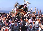全国に奇祭と呼ばれるお祭は数々ありますが、ここ神奈川県茅ヶ崎市の南湖(なんこ)海岸(茅ヶ崎西側の海岸)で、毎年7月20日に催される浜降祭(はまおりさい)もそのひとつ数えられています。この祭、“暁の祭典”とも“みそぎ”とも呼ばれています。暁の祭典はその名の通り、早暁に挙行されるからです。また、みそぎは神輿(みこし)を海に入れて、清めることが由来になっているようです。