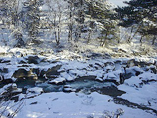 撮影はたいまつを持った行列やさまざまな作法が対象になります。また、お堂の中でも撮影は自由ですが、9時からの延年の舞は、厳禁になりますので、特に注意してください。さらに撮影場所はお堂の中ですから、人員に限りがあります。三脚を持ち込んでも実際には倒されたりしますので、使用が不可能になります。また、ストロボも一応、自由ということですが、周囲の迷惑もありますからできるだけ避けて、撮影したいものです。こうしたことから、高感度フィルムでの撮影をお勧めします。 ところで、この毛越寺の庭には、大泉が池を中心とする浄土庭園と平安時代の伽藍(がらん)遺構がほぼ完全な状態で保存されています。雪化粧した浄土庭園が魅力的で、水墨画調の景色を撮りたい人には打って付けのポイントです。また、水墨画調ということでは、毛越寺より車で15分程度の場所に厳美渓があります。雪の渓谷もまた素晴らしい被写体を提供してくれます。
