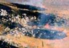 午前9時30分、サイレンを合図に火が放たれ、勢よいがついてくると、火が風を呼び、枯れ草が踊るようにも見えます。また、火が爆竹のような音をたてて、天高く燃え上がる風景は圧巻です。