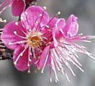梅の撮影は、花そのものがどちらかというと地味ですから、緋色のもうせんの派手な什器や着物などと対比した撮影もおもしろいでしょう。また桜に比べ、花を通してバックが透けてしうケースもありますので、バックの景色のあしらいにも注意してください。