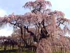 さらにここには日本三大桜のひとつ、三春滝桜があります。樹齢は千年以上と推測される、エドヒガン系の紅枝垂桜で、国指定天然記念物を受けていますが、日本三大桜に数えられるだけに、見事な花を見せてくれます。樹高は12mですが、枝張りが広く、赤に近いピ ンクの花が、滝が流れているように見えます。銘木と言われる所以がよく分かります。
