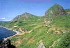 一方、島野景色も素晴らしく、ビューポイントとしては、島の最北端にあるスコトン岬、断崖絶壁のゴロタ岬(ここから眺めるスコトン岬の景観が良い)、緑の岬と海の青さとのコントラストがきれいな澄海(すかい)岬がおすすめです。また、島の西側にある細長い岩が直立した地蔵岩、大きな桃の形をした桃岩、ユ-モラスな後ろ姿の猫岩は島の3大奇岩です。