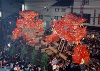 「ヨイアサッ」の威勢のよい掛け声とともに町内を練り歩く、あんどんは迫力満点ですが、人の波が動きますので、撮影にはくれぐれも注意してください。