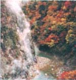 1)北秋田郡阿仁町の打当川流域 一の滝、安ノ滝などがあり、隠れた紅葉の名所(熊注意)。