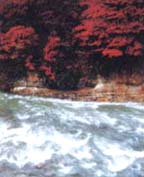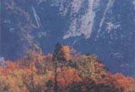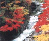 1)秩父郡大滝村中津川渓谷 川の両側断崖に約5Kmの紅葉。