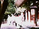 生駒山麓の森に、枚岡造りという桧皮(ひわだ)葺き、極彩色の建物が冬の日差しに映えるなか、12月25日に古式を残す珍しい「注連縄掛(しめかけ)神事」が早朝から行われます。
