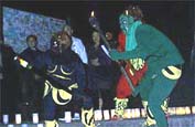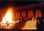 夕刻になりますと、蔵王堂境内を2000本のロウソクが灯される「吉野燈花会」が行われ、幽玄な世界が、かもしだされます。その中に、吉野山中を追われた鬼達が現れます。また、2000本のロウソクをバックにした、和太鼓集団JDO 一路による演奏があります。