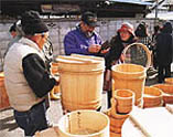 若草の名物のひとつに、木工品があります。特に臼(うす)や杵(きね)が有名で、この販売もよそではあまり見られない被写体と言えます。