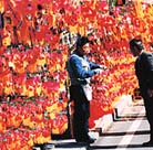 この市の特徴としては、県道1.1kmの両脇を使用していることが挙げられます。家の庭先を利用したりしていますので、思わぬ被写体に出会えます。甲州だるまズラリと並んだり、縁起物がぶら下がった光景はなかなかのものです。