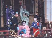 この祭のメインは、曳山を曳き回すだけでなく、その曳山の上で大人顔負けの演技で舞う、子供歌舞伎があります。5~12才までの男子が舞います。