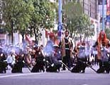撮影のポイントは、隊列ではやや高い位置から撮ると、カラフルな写真になります。但し、地面がアスファルトですから、歴史的な感じが薄れます。隊列を仰ぎ見るような撮り方がおもしろいかも知れません。