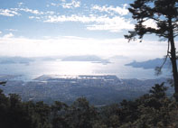 この極楽寺は、731年に開山。標高693mの極楽寺山にあって、日本の名木100選にも選ばれた樹齢300年、高さ20mの巨大なアカガシがあるほか、蛇の池には約300本のスイレンが色とりどりに咲いています。さらに展望台からは瀬戸内の島々が一望できる景色(左の写真)も見逃せません。但し、行くには、車は別として、2~3時間の登山を覚悟しなければなりません。