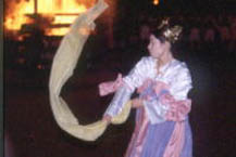 その西の都で11月2~3日に秋を彩る「西都古墳まつり」があります。初日の夜、天孫ニニギノミコトとコノハナサクヤヒメの伝説に基づいた、神秘的で幻想的な「炎の祭典」が催されます。かがり火をバックに優雅な女人の舞、勇壮な剣の踊りは大きな感動を伝えてくれます。もちろん、撮影のクライマックスです。