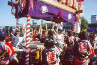 昔の太鼓はもっと小さかったそうですが、各町内でこの鼕を持っていたことから、いつしか、音の大きさを競うようになり、それにつれて形態も大きくなったそうです。松江の各町内で、30基ほどがあるといわれていますが、保存の関係やお囃子の笛を吹く人が少なくなってしまったとかで、例年10~15基が行列を組みます。