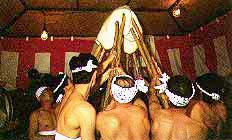 年の瀬が押し迫ると、あちこちから餅つきの杵の音が聞かれます。ここ上山市の高松観音では、12月15日(毎年12月17日が御縁日で、その直前の日曜日)、守護のお礼に餅を奉納しますが、その餅つきは、市の無形文化財に指定され、正式には高松観音御年越餅搗行事といいます。もっとも地元では通称「裸持ちつき」の名で親しまれています。