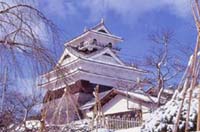 上山といえば、「奥羽三楽郷」のひとつに数えられた湯の町ですが、昭和になって復元された市民の城、上山城を被写体として見逃すことはできません。特に冬季の雪のかぶった姿は、月岡公園をバックにして、格別の景観をかもし出してくれます。