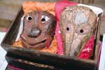 ユーモラスで、楽しい話など8曲が伝わっています(写真は狂言に使用される面)。