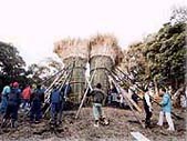 まず、火祭りに使用する「すずみ」と呼ばれる超特大の松明(たいまつ)や、わらじなどが町内総出で作られます。祭への期待と興奮の度合いが、すでに準備段階でも高められるそうです。