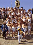 午後3時頃 海で奉仕者と呼ばれる70~80人の男たちが、晒のふんどしひとつで身を清めます。