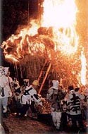 午後8時頃 クライマックスを迎えます。男たちが神木と縄を求めて、燃え盛る炎に何度となく飛び込みます。