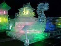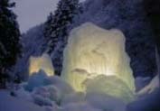 内容:おしどり隠しの滝をバックに氷のオブジェが彩りを添える