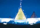 世界最大の一年計「砂暦」が時を刻む仁摩サンドミュージアム。午後11時55分からのカウントダウンイベント。年男・年女108人が「砂暦」につながる大綱を引いて深夜零時に180度回転させます。同時に約800発の打上げ花火。