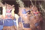 薩摩半島の西に浮かぶ甑島。トシドン(国指定重要無形民俗文化財)は大きな口に鋭い目と長く尖った鼻をもち、恐ろしい声を出し、大晦日に天から舞い降りてきて子供達に説教をして回る神様。